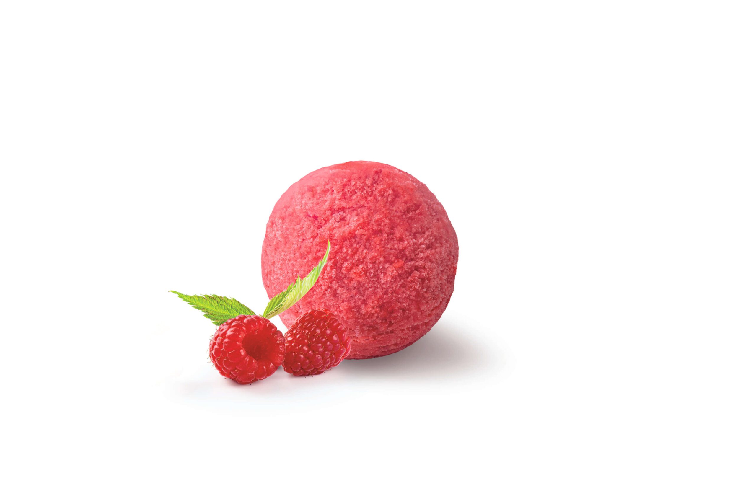 Het frambozen sorbet biedt de zoete en zure smaak van sappige frambozen, perfect voor liefhebbers...